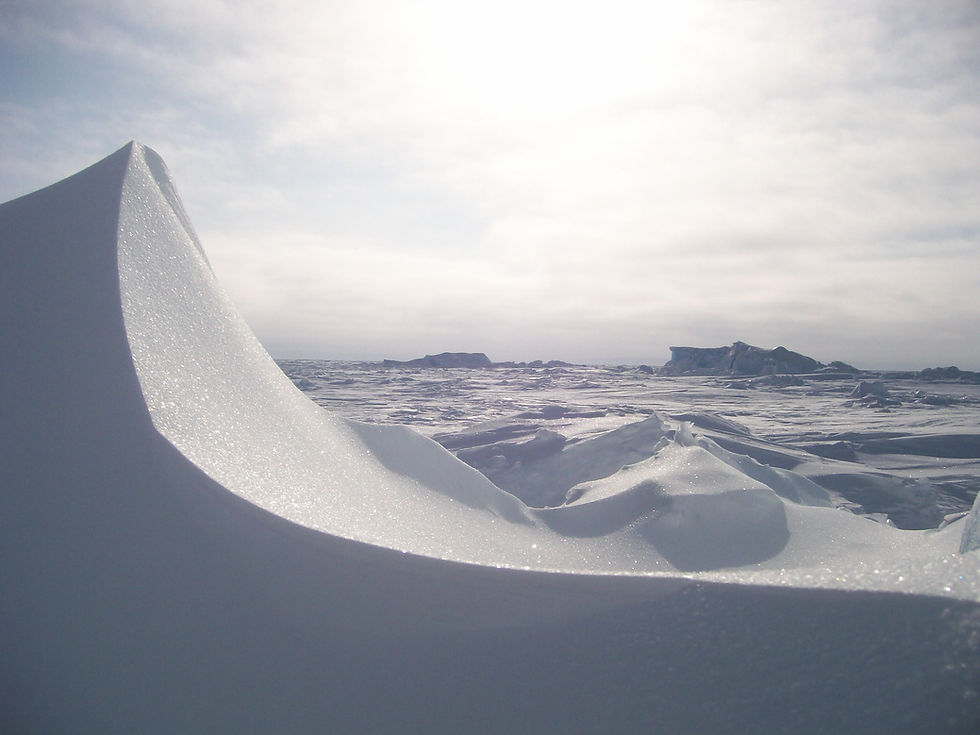 The wind blew again. Snow surrounded us, and I shielded my face and crouched down as it bit into me. Piercing, stabbing, shedding each layer of skin that came out to protect the last; tattered like flower petals in hail. Then it left. The day was clear, the ice blocks wept in the sun, and I felt warm. I shuffled my feet back and forth in the snow.